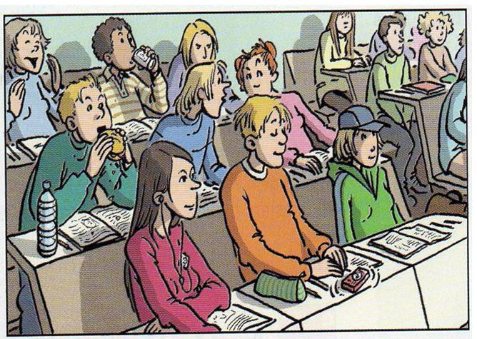 Wie reagiert der Lehrer? was sagt er den Schülern? Klicke auf die unerwünschen Benehmen, um es zu erfahren.