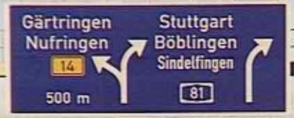 | sur la route ou l'autoroute (panneaux de signalisation) | ![]() ![]() |
