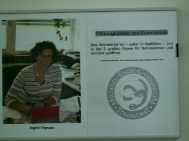 ![]() das Sekrätariat und die Sekräterin, die nette Frau Thyssen |