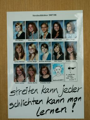 ![]() die Streitschlichter: les médiateurs en cas de conflit avec un autre élève ou un profeseur. |