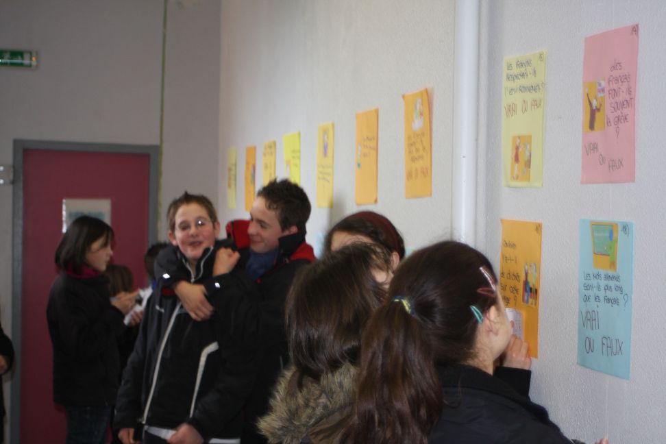 9H25: installation et découverte des panneaux des 3èmes bilangues par les 6èmes.