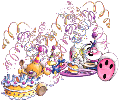 Diddl feiert mit Freunden.